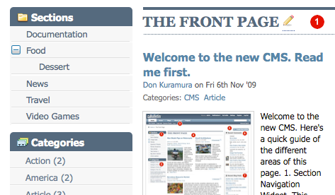 18. Section: This displays the section in which this article displays. Clicking on "Section" will display all the articles sorted by sections.